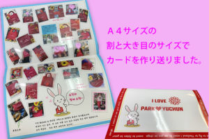- みなさまのお名前入りのカードと認証ショットを(プレゼントBOX経由ですが、)ユチョンさんにお渡ししました。
