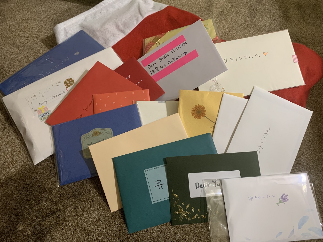 「愛するパク・ユチョンに ユチョンさんに会えるこの場所を作ってくださってありがとうございます。 今日、ここに来られなかった仲間から手紙を受け取ったのでお届けしました。 みんな、1月に会えることをとても楽しみにしています。 小さなぬいぐるみは今年Believe in YUがユチョンさんをイメージして作ったものです。 似ていますか? 可愛い😊? 「Best Wishes From Yu Chun」涙が出るほど嬉しいです。 2023年はもっと会いに行きます!」