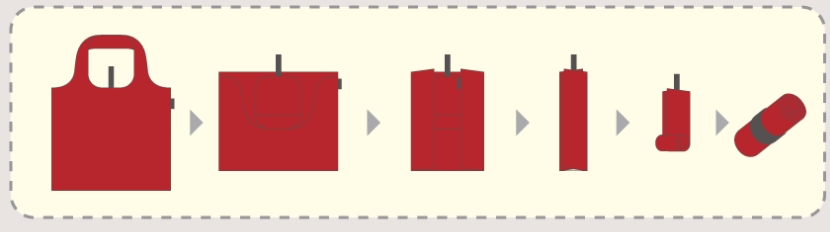 Bags are recycled products using plastic bottles. They feel very soft and foldable compactly in your usual bags.