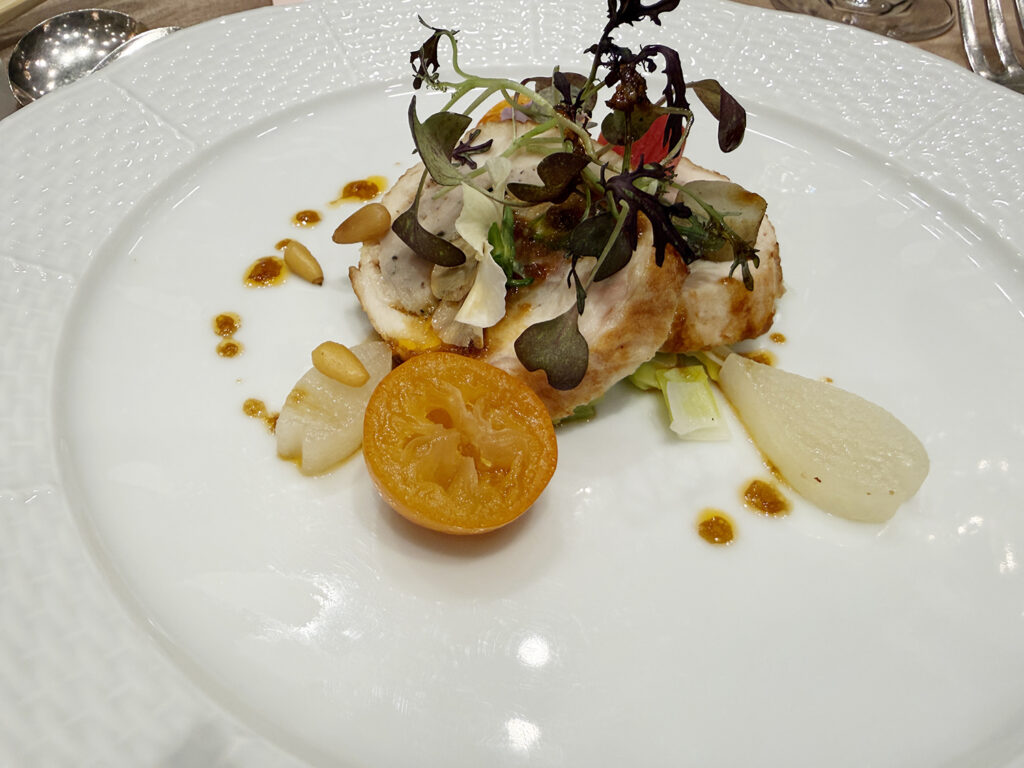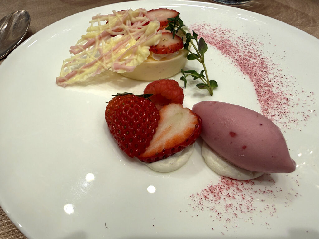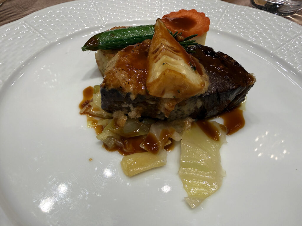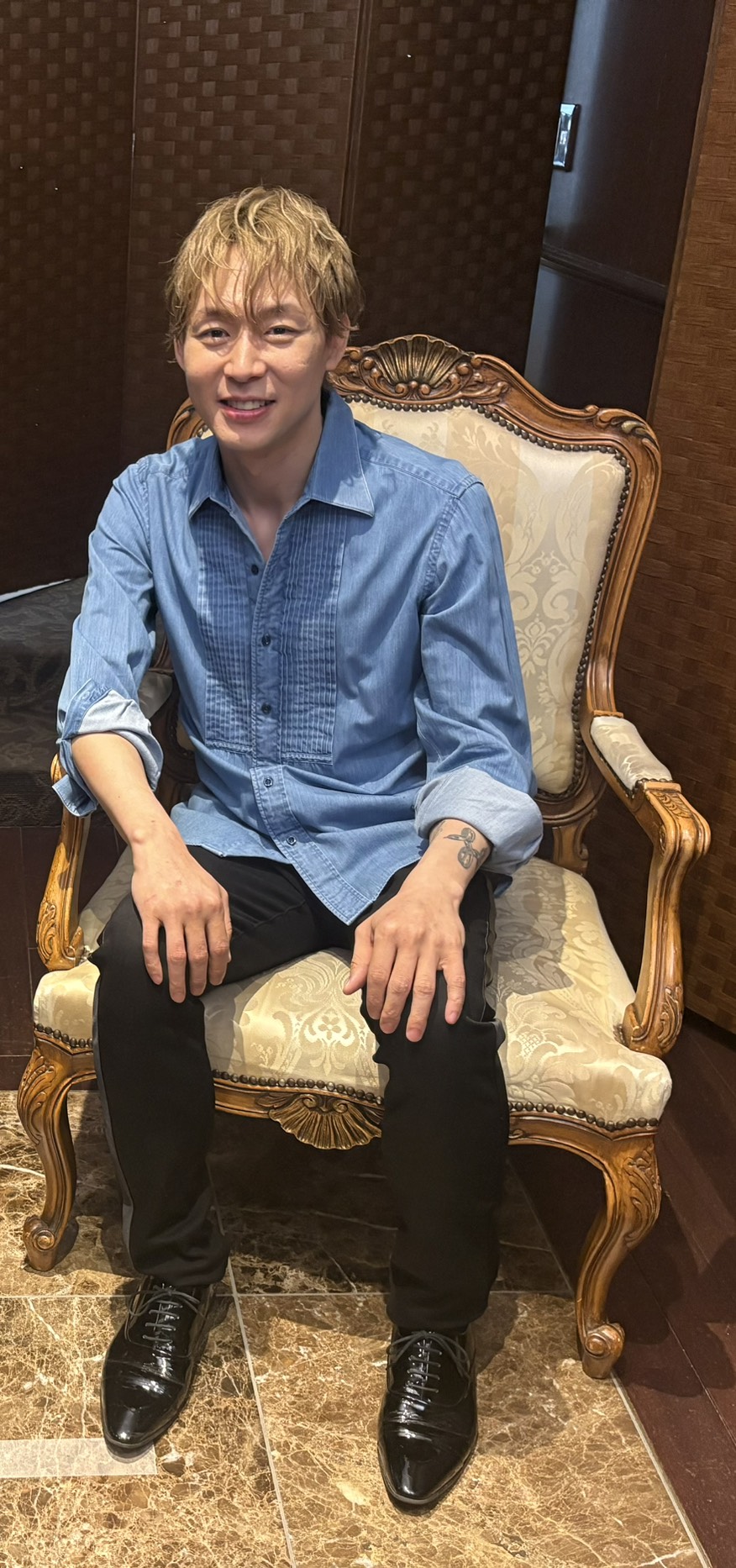 2部だけでも4着😲真っ白なタキシード姿で登場、そしてお色直しは、(遠目には)パープル系の華やかなタキシード、次にサブステに表れたのは、ミラノコレクション2025の作品で“JAPANESQUE SUSTAINABLE FORMAL”和装タキシード、アンコールでは、ジーンズに深紅のベロアジャケット(下記写真)というスタイルでした。