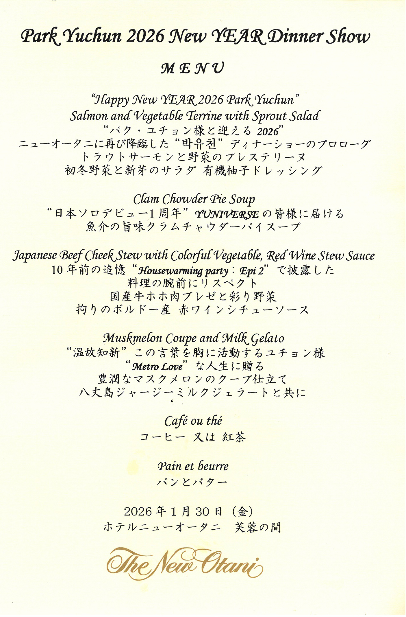 1月30日(金)ホテルニューオータニ